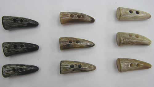 Our Company offers the best handmade Ox Horn toggles to the Fashion industries. These Handmade Button toggles are made by artisans who have experience of more than 25 Years in this field. Each Button toggle is unique in its design. Sizes also vary according to design patterns. These ox Horn toggles are also offered according to Customers own designs & specifications. Horn Toggles also add touch sto the companies collection of Fashion Buttons & Fasteners. Ox HornToggles are also available in various designs & sizes. Sizes also vary according to design patterns.